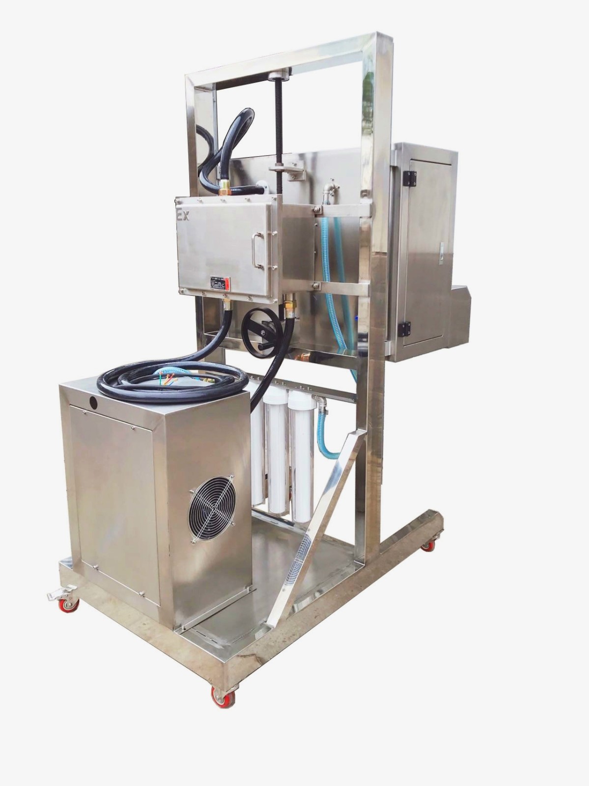 機頭可上下調節,PLC觸摸屏控製,三級1微米過濾。